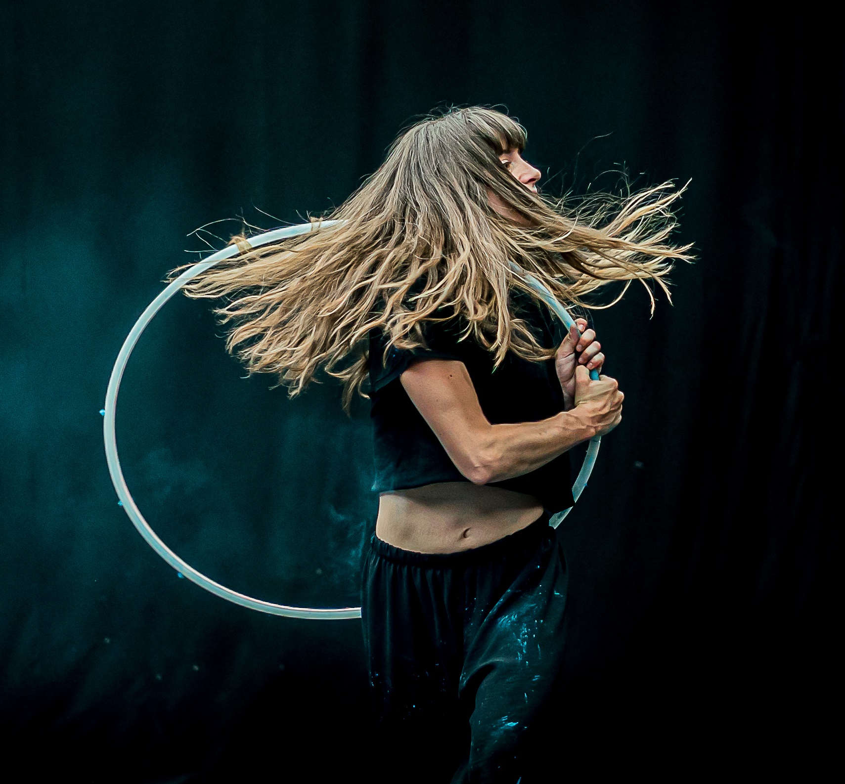 Espectáculo unipersonal de circo y movimiento en el que la magistral manipulación del hula-hop se fusiona con la danza. Un espectáculo que cuenta con muchos ingredientes para alcanzar altas cotas de belleza circense: una música sublime, coreografías emocionantes y efectos visuales sorprendentes. Parece circo pero no lo es del todo, parece danza pero no lo es del todo… Creo que es un poema.