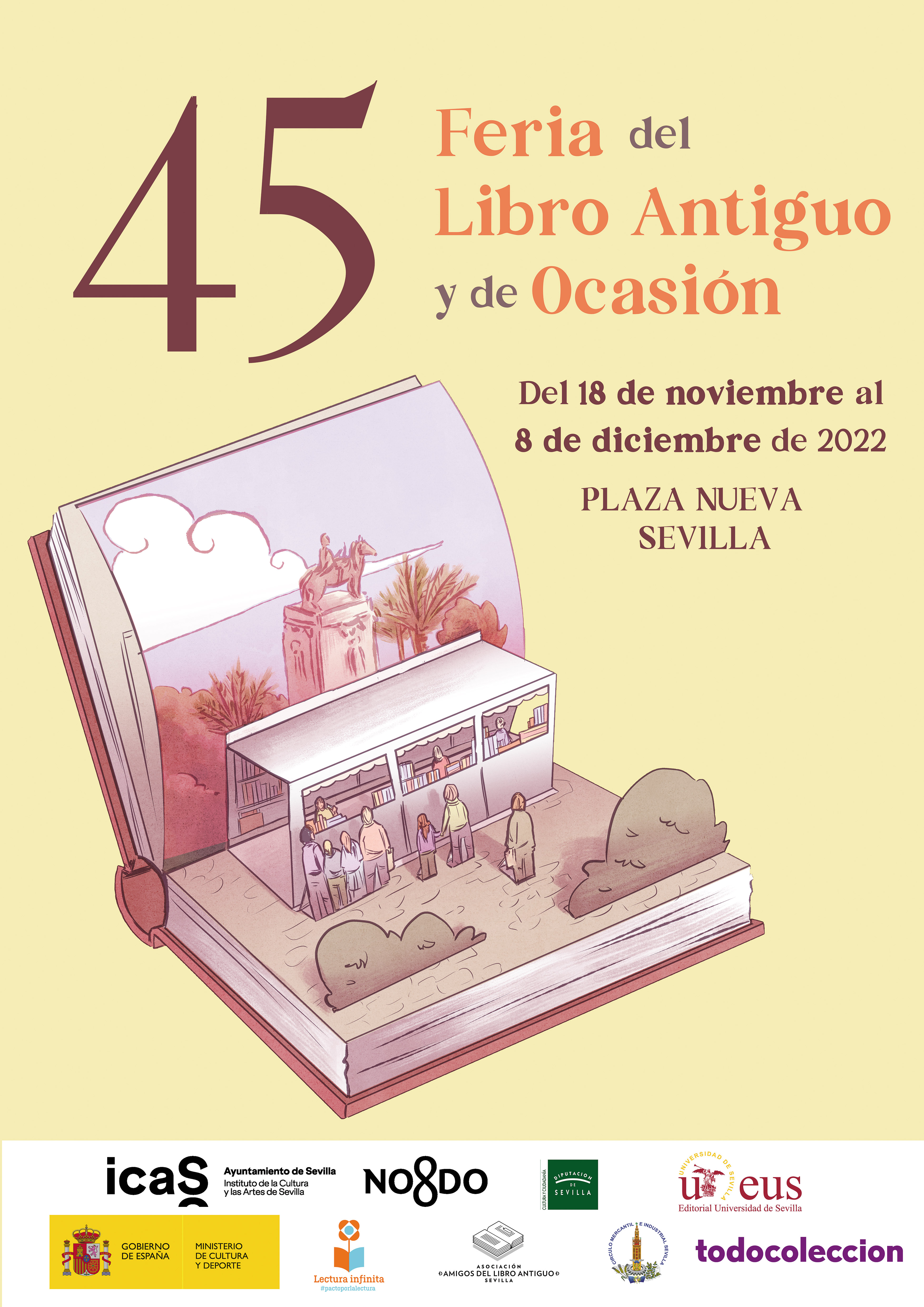 La Feria del Libro y de Ocasión de Sevilla (FLAOS), una de las citas imprescindibles del ‘Otoño Cultural’ sevillano, que cuenta con la colaboración del Instituto de la Cultura y las Artes de Sevilla (ICAS), celebra su 45 edición en Plaza Nueva reuniendo hasta el jueves 8 de diciembre a las librerías de viejo más importantes del país que un año más expondrán en sus casetas referencias de libros antiguos, raros, curiosos, descatalogados o difíciles de encontrar, a precios asequibles, así como interesantes revistas, carteles, afiches de cine y otras publicaciones de coleccionistas.