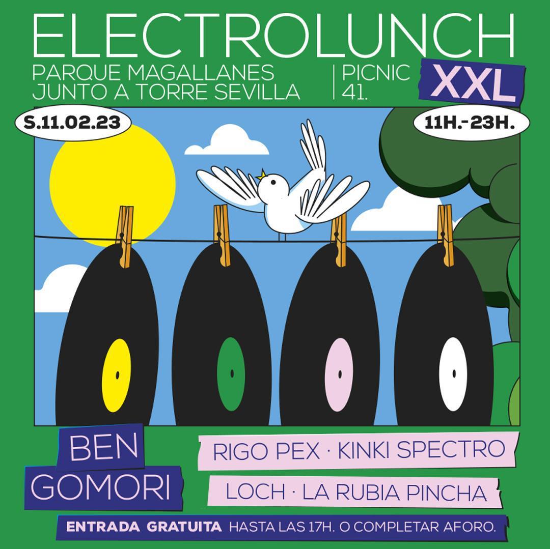 Tras el éxito de público en sus dos primeras ediciones donde se congregaron miles de personas, Electrolunch regresa en el Parque Magallanes en su versión más invernal. Un programa lleno de sesiones de Dj’s, Mercadillo, Gastronomía, Talleres y actividades para todos los públicos y edades con entrada gratuita hasta 17h o completar aforo. El productor inglés Ben Gomori y el guatemalteco residente en Madrid Rigo Pex, también conocido como Meneo, lideran un cartel plagado de propuestas interesantes. Además, el festival tiene preparadas numerosas actividades para niños y nuevos talleres como el de Resolume y baile Hip Hop o Skate para combatir las bajas temperaturas de esta época y entrar en calor.