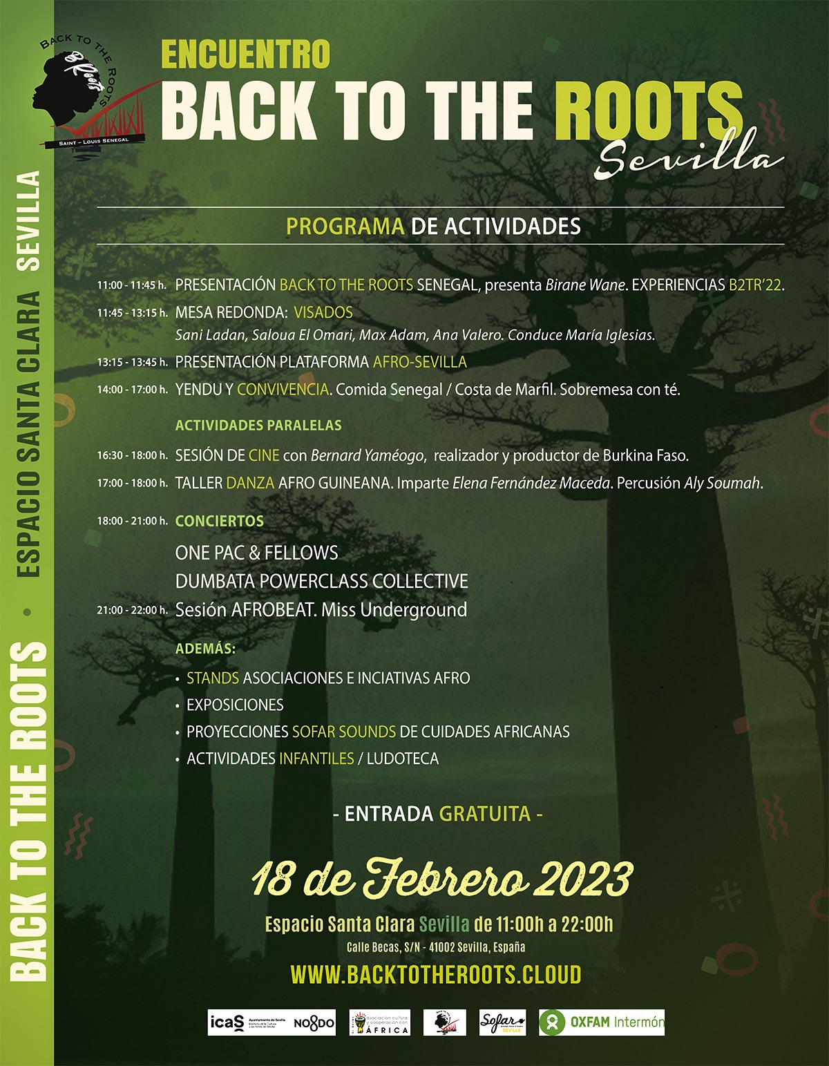 El Festival ‘Back to the Roots’ celebra en el Espacio Santa Clara su segunda edición con actividades artísticas interculturales, debates, exposiciones, música en directo, danza, gastronomía, cine y ludoteca para los más pequeños, que promueven el encuentro de la cultura africana y la sociedad sevillana.