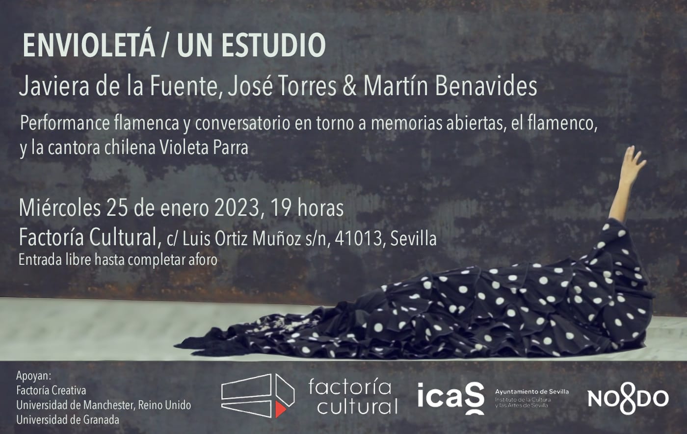 Dentro del programa Factoría Creativa, Javiera de la Fuente desarrolla una performance flamenca y conversa con José Torres y Martín Benavides en torno a memorias abiertas, el flamenco y la cantora chilena Violeta Parra.