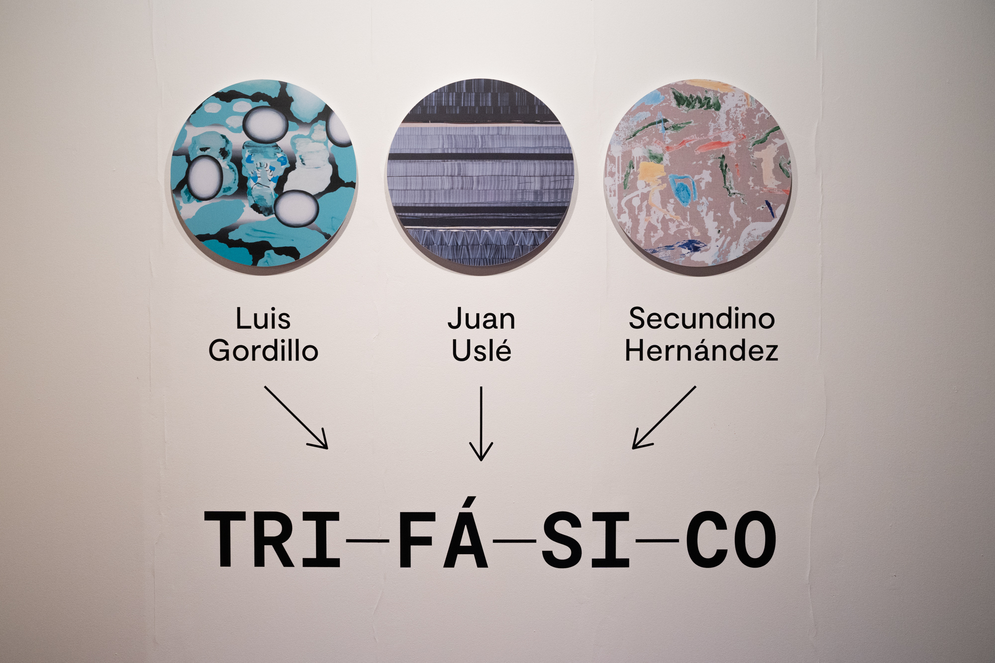 Comisariada por Sema D’Acosta, TRI-FÁ-SI-CO no es una simple exposición colectiva, tiene un carácter dialéctico y debería interpretarse como un encuentro entre tres personas que se conocen y aprecian desde el compromiso con la pintura, los tres autores españoles con mayor proyección internacional: Luis Gordillo (Sevilla, 1934), Juan Uslé (Cantabria, 1974) y Secundino Hernández (Madrid, 1975).