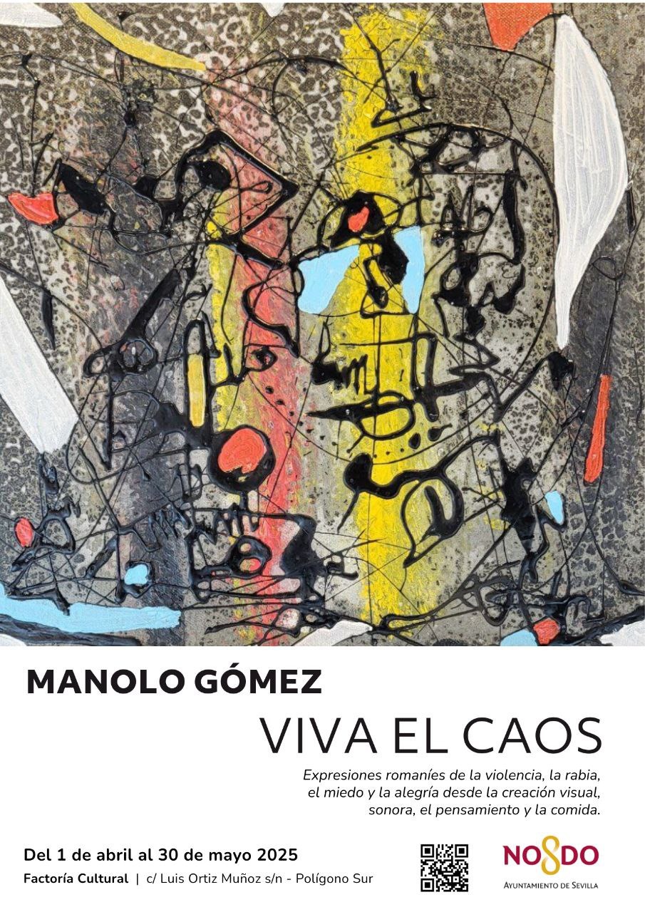 La ciudad de Sevilla acogerá por primera vez una exposición monográfica del artista Manolo Gómez. Bajo el título “Viva el caos: Expresiones romaníes de la violencia, la rabia, el miedo y la alegría”, la muestra se desarrollará del 1 de abril al 31 de mayo de 2025 en Factoría Cultural y ofrece una aproximación sensorial, plástica y conceptual al pensamiento gitano contemporáneo.