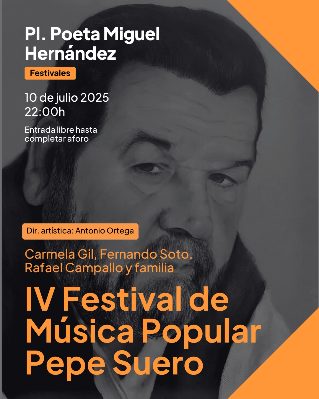 El Ayuntamiento de Sevilla, a través del Área de Cultura y en colaboración con la Factoría Cultural del Polígono Sur y el Distrito Cerro-Amate, presenta la cuarta edición del Festival de Canción Popular Pepe Suero, que se celebrará el próximo 10 de julio a las 22:00 horas en la Plaza Poeta Miguel Hernández (Parque Estoril). La entrada será libre hasta completar aforo.