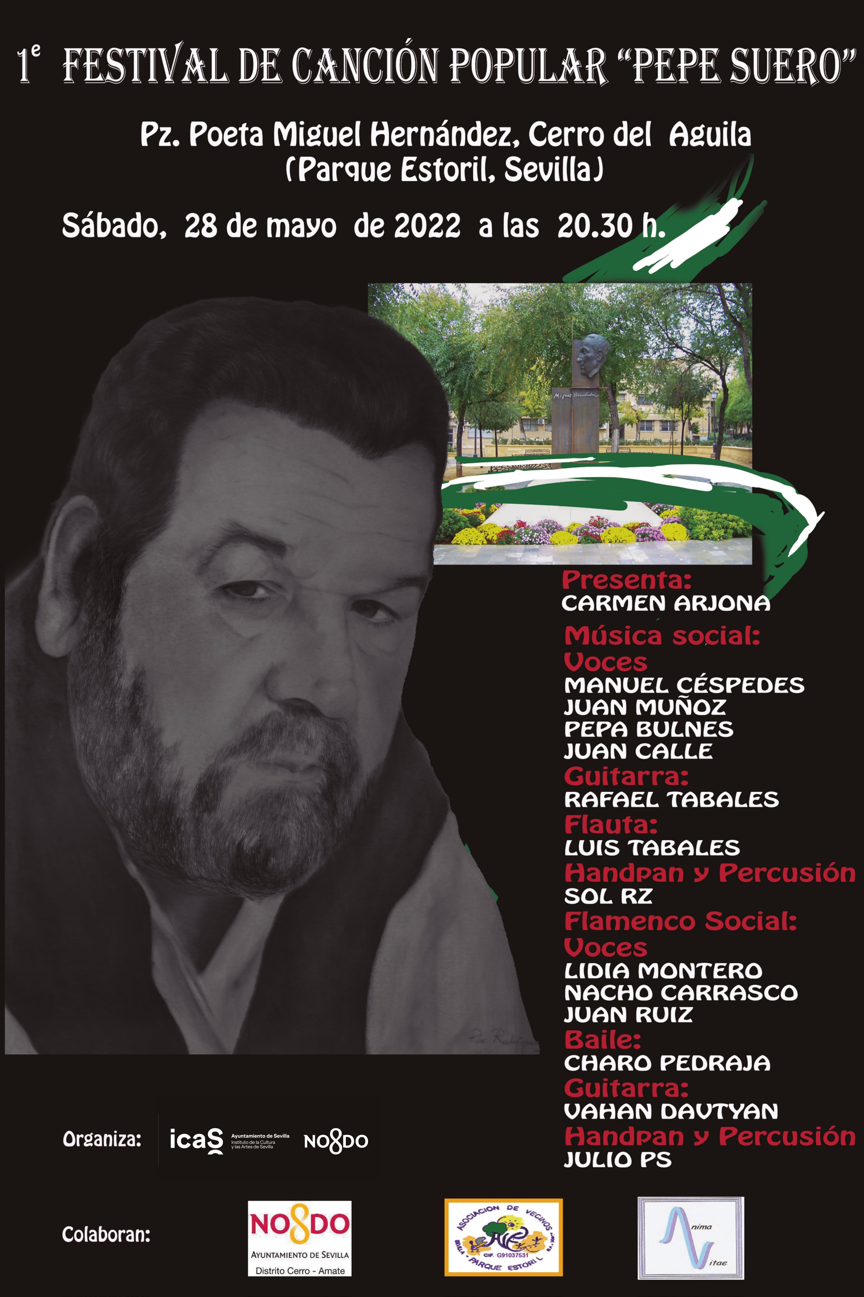 Impulsado por la Asociación de Vecinos Parque Estoril con la colaboración del Distrito Cerro-Amate, este encuentro en torno a la música nace para rendir homenaje a Pepe Suero, artista del Cerro del Águila galardonado con la Medalla de Andalucía en 2006 y cuya obra es un alegato contra la injusticia y la desigualdad en Andalucía.