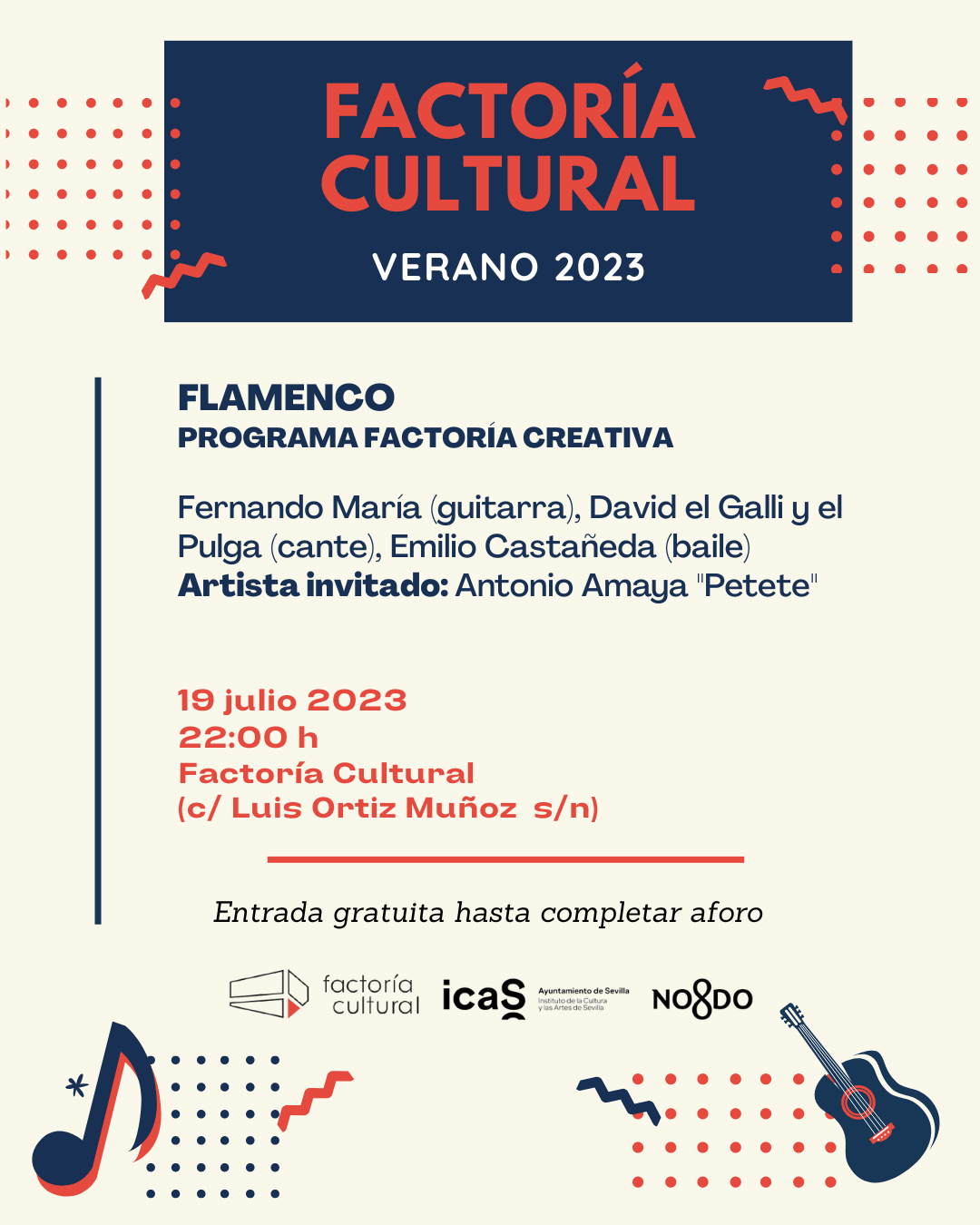Nueva edición de Miércoles Flamencos, organizados por Factoría Cultural, como punto de encuentro en el que diversos artistas subirán cada miércoles al escenario ubicado en el patio para ofrecer espectáculos de flamenco.