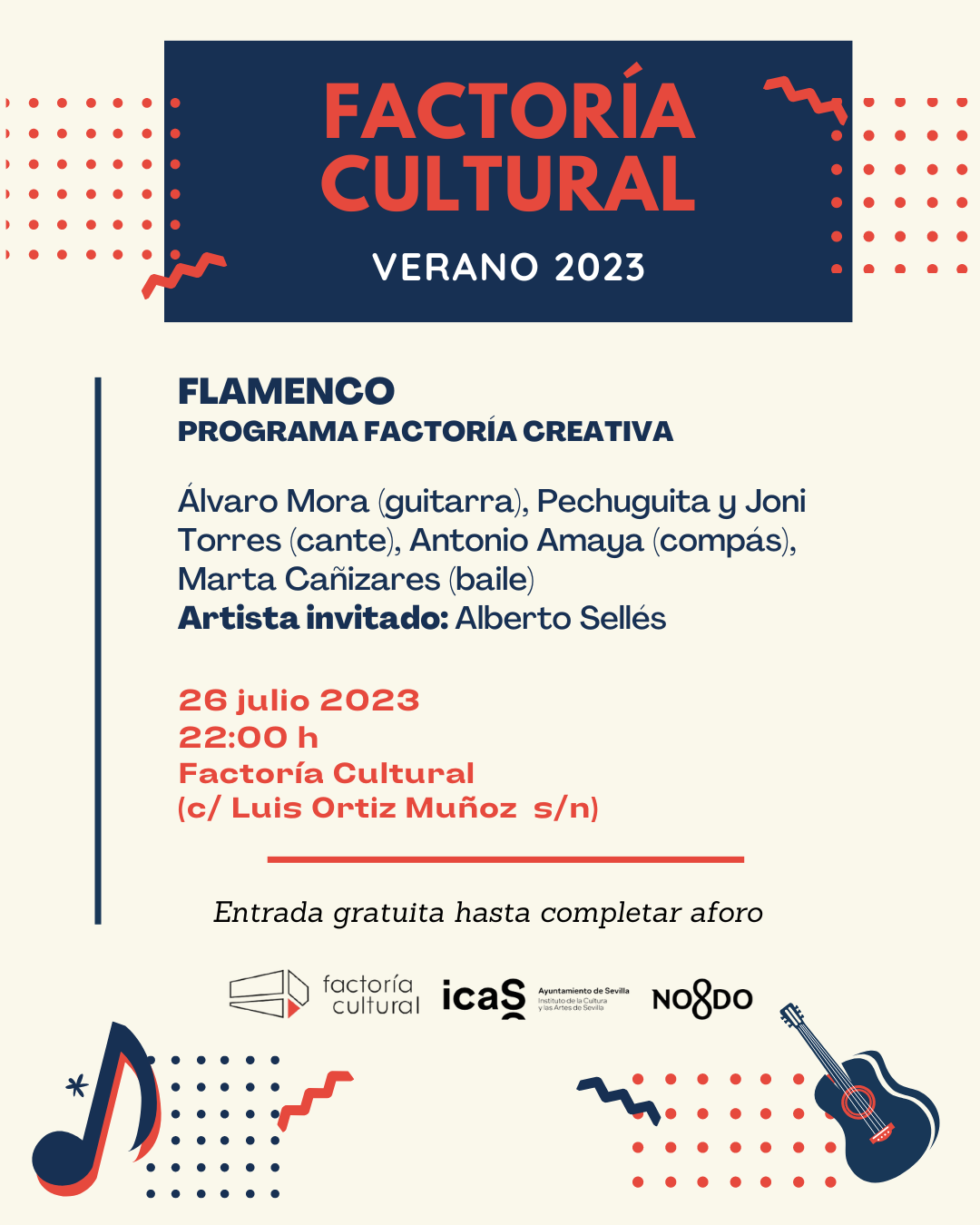 Nueva edición de Miércoles Flamencos, organizados por Factoría Cultural, como punto de encuentro en el que diversos artistas subirán cada miércoles al escenario ubicado en el patio para ofrecer espectáculos de flamenco.
