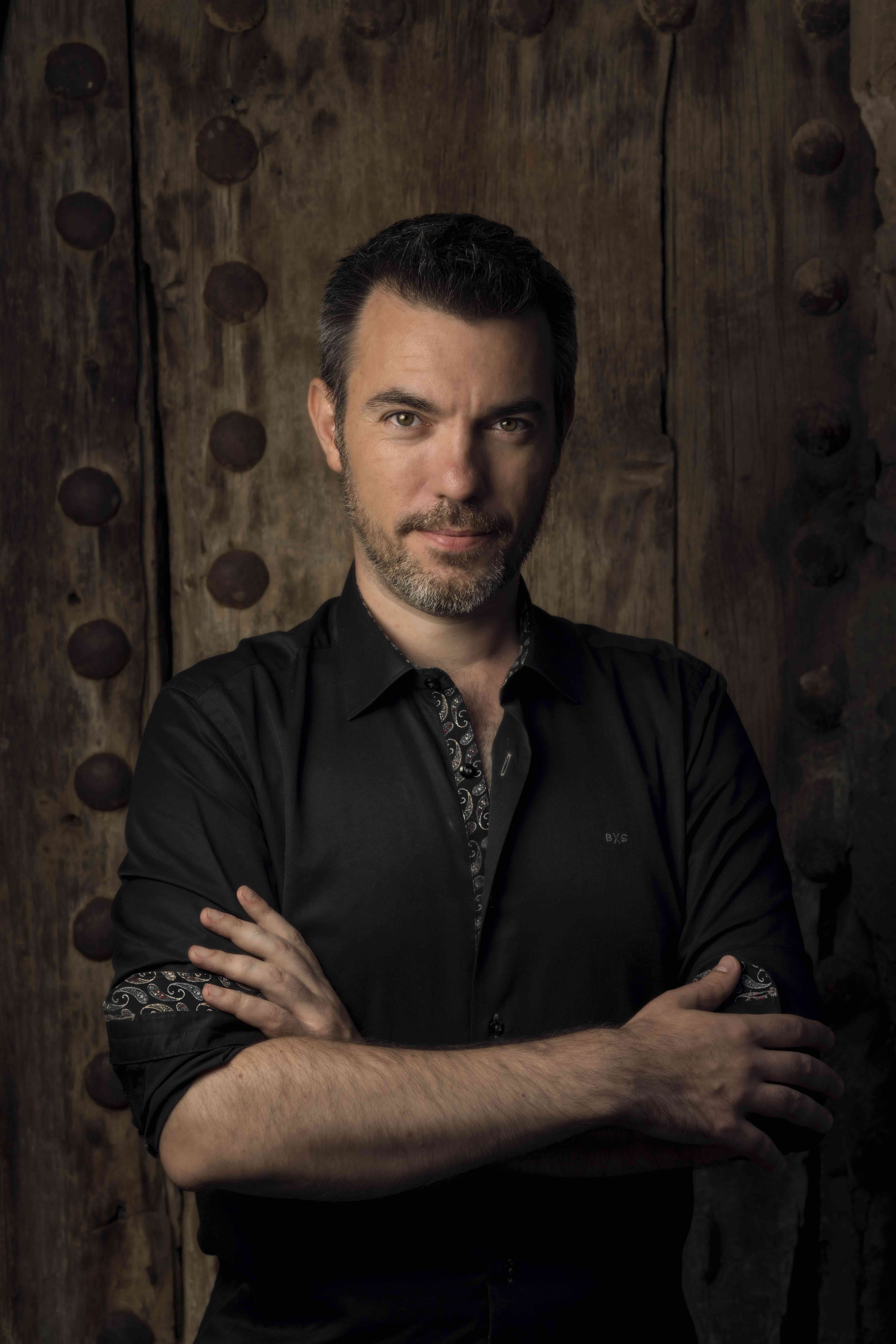 Nacido en Zaragoza en 1974, estudió piano (Pilar Armijo) y clave (J. L. González Uriol) en el Conservatorio Superior de dicha ciudad. Prosigue su formación en el Conservatoire National Supérieur de París, donde se especializa en fortepiano (Patrick Cohen) y estudia dirección de orquesta (Claire Levacher). Ha seguido cursos de perfeccionamiento con J.-W. Jansen, G. Leonhardt, L.-U. Mortensen, J. Ogg y P. Badura-Skoda, entre otros.