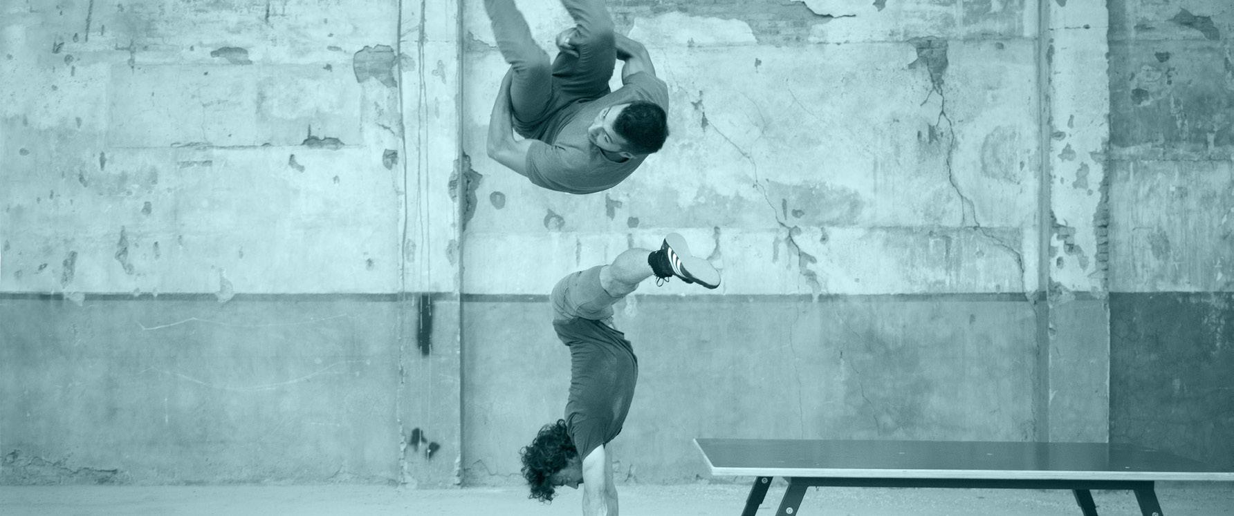Sobrio en puesta en escena y espectacular en contenido. Tres acróbatas y un músico. Cuatro roles, cuatro personajes bien definidos que encarnan distintas facetas, algunas reconocibles desde el prisma de los payasos clásicos. El mandón que quiere poner orden e imponerse sin mucho éxito, el artista juguetón y desobediente, el acróbata novato e inseguro y un músico con delirios de grandeza. Todos ellos consiguen, contra pronóstico, sincronizar sus voluntades y poner en pie un espectáculo a tope de ritmo y generoso en esfuerzo. “Acrobacias de alto voltaje. Música en directo. Mucha picardía”.