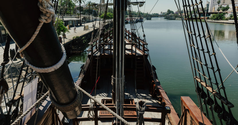La Nao Victoria 500 está amarrada en los muelles del Paseo Marqués de Contadero como principal reclamo y contenido del Espacio de la Primera Vuelta al Mundo. El centro de interpretación sobre esta gesta marítima, promovido por la Fundación Nao Victoria en colaboración con el Ayuntamiento de Sevilla y la Junta de Andalucía, abrió sus puertas el verano pasado con motivo de los 500 años de la partida de la expedición de Fernando Magallanes y Juan Sebastián Elcano.