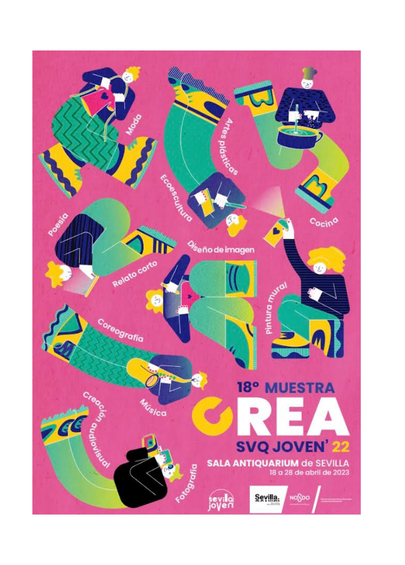 Exposición de artes visuales, plásticas y pintura contemporánea dedicada a la juventud, que cuenta con las obras ganadoras y seleccionadas en el concurso del 18º certamen CREA Sevilla Joven.