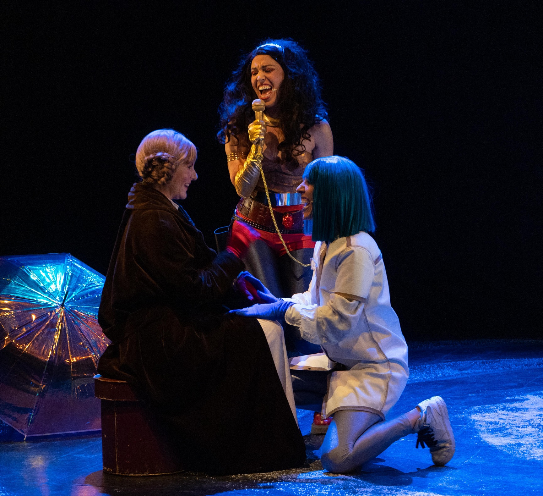 La abuela y la profesora de Emma se encuentran a la salida del colegio. Allí se dan cuenta de que Emma no está, ¡ha desaparecido!. En ese momento aparece la mismísima Wonderwoman, que les comunica que Emma ha sido secuestrada por un malvado villano, La Sombra. Las tres tendrán que unir fuerzas para rescatar a Emma. Nuestras superheroínas necesitarán de la participación del público para superar alguna prueba musical que les ayudará a completar su misión.