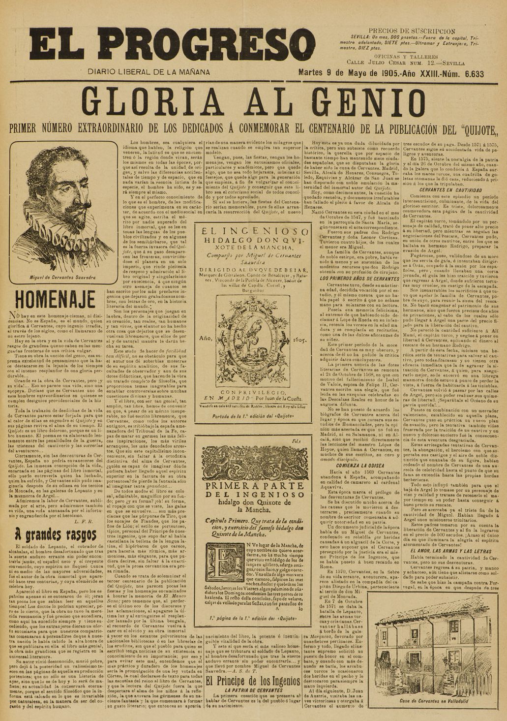 Ya en 1905 el diario El Progreso había dedicado dos números extraordinarios a conmemorar el centenario de la publicación de El Quijote. En el segundo de ellos uno de los artículos bascula alrededor de una pregunta, signo de otros tiempos: “¿Es conveniente la lectura del Quijote para la mujer?”. La revista La Fotografía convocó también un concurso fotográfico de escenas inspiradas en la obra.