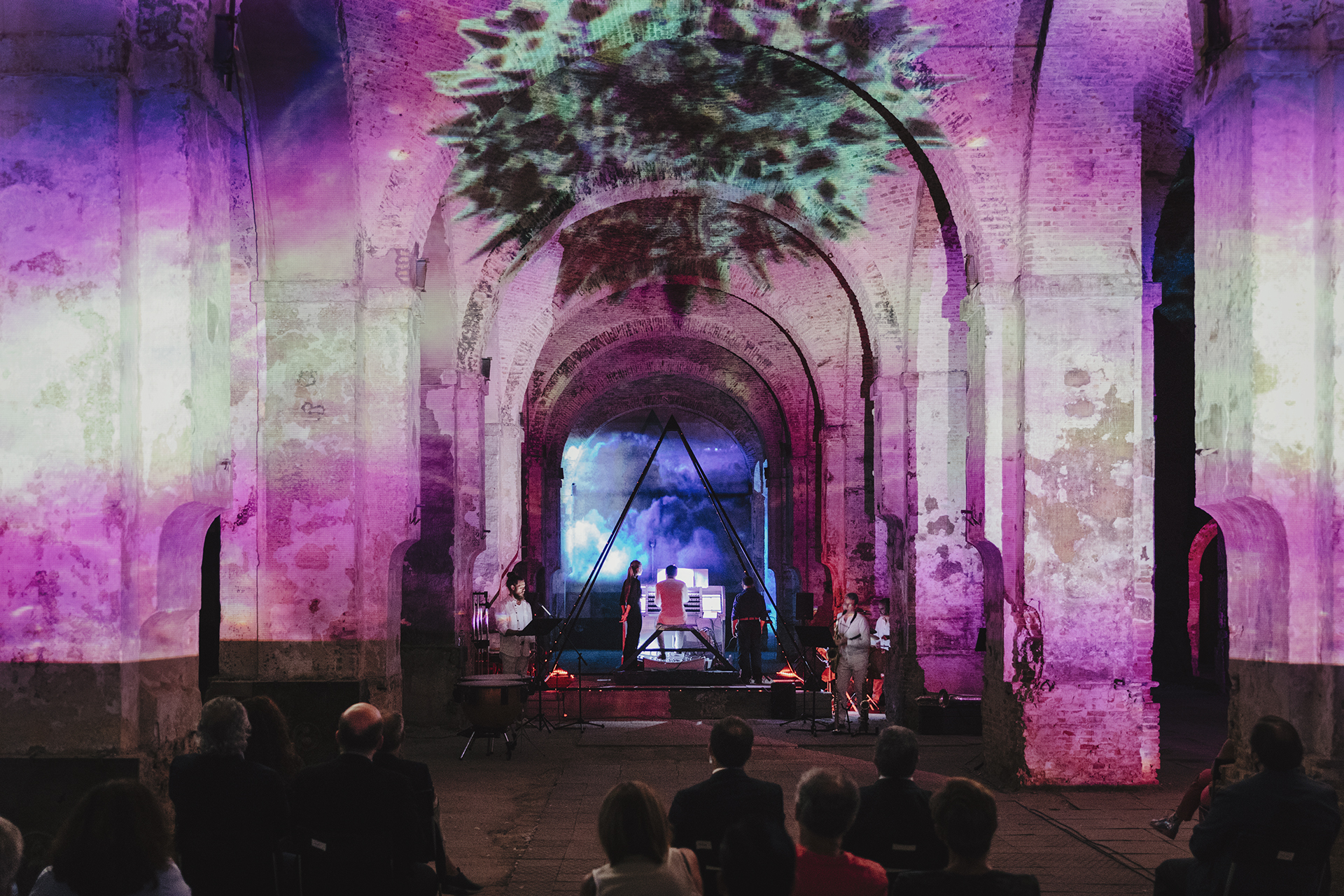 La experiencia va acompañada de creaciones visuales a cargo de las artistas Beatriz Rivas y Lucía Núñez, que inundarán todo el espacio con proyecciones mapping en directo, acordes a la creación musical.