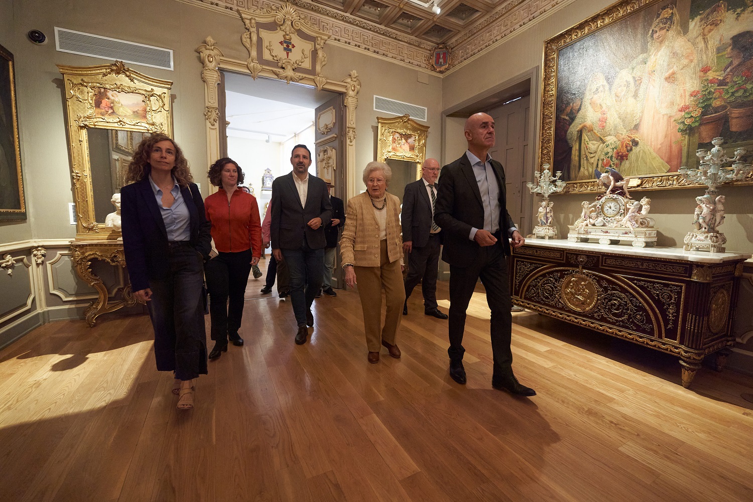 El alcalde de Sevilla, Antonio Muñoz, acompañado por el delegado de Participación Ciudadana, Coordinación de Distritos y Modernización Digital, Juan Tomás Aragón, y la viuda de Mariano Bellver, Dolores Mejías, ha visitado hoy la culminación de dos actuaciones llevadas a cabo en la Casa Fabiola, realizadas con el objetivo de mejorar las condiciones de exposición de la Donación de Arte Mariano Bellver y Dolores Mejías.