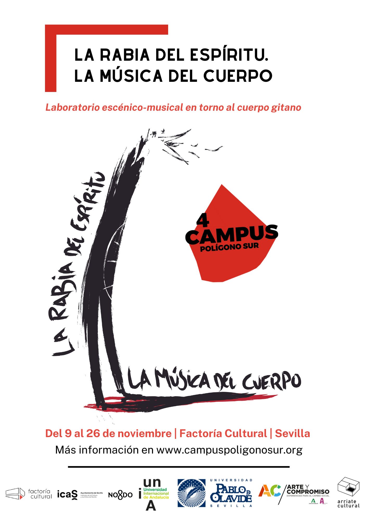 Formación y arte vuelven a darse la mano en una nueva edición del Campus Polígono Sur que, promovido por el Instituto de la Cultura y las Artes de Sevilla (ICAS) a través de Factoría Cultural, abre el plazo de inscripción para participar en su IV edición, que se celebrará entre los días 9 y 26 de noviembre bajo el título ‘La rabia del espíritu, la música del cuerpo. Laboratorio escénico-musical en torno al cuerpo gitano’.
