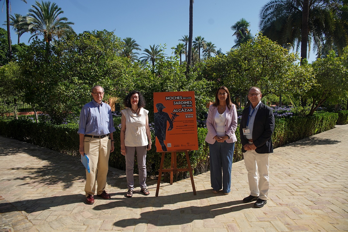 “Nos adentramos en la vigesimocuarta edición de ‘Noches en los Jardines del Real Alcázar’, que es ya todo un clásico en la oferta cultural de nuestra ciudad para las noches del verano y, además, un reclamo turístico de primer orden”, ha dicho Sonia Gaya, quien ha estado acompañada por el alcaide del monumento, Román Fernández-Baca, la directora conservadora, Isabel Rodríguez, y Miguel Ángel González, director gerente de la empresa de gestión cultural ACTIDEA, adjudicataria del contrato para la organización de este ciclo de conciertos.