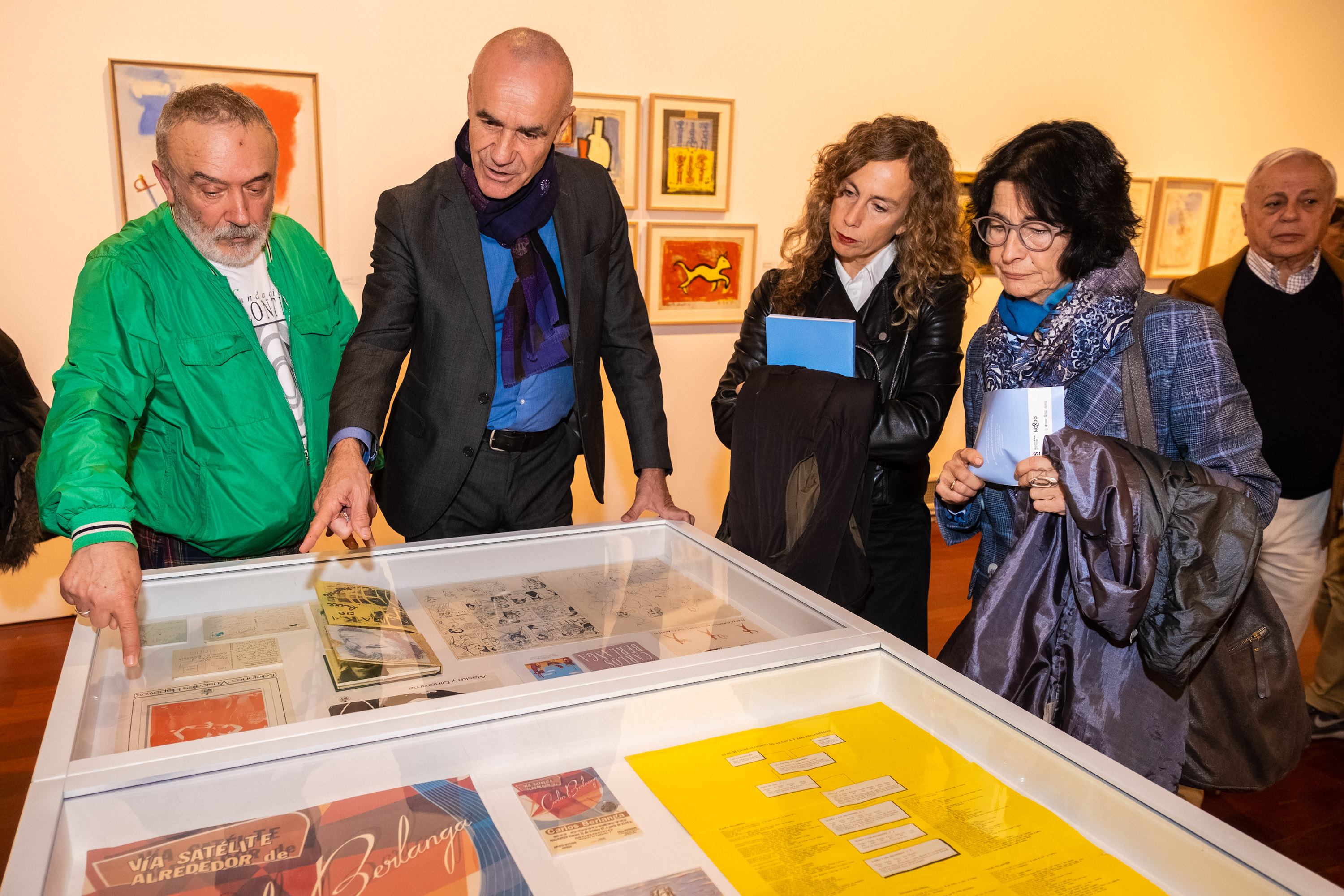 Además, estas piezas están acompañadas por dos grandes bloques temáticos: por una parte, un conjunto de retratos del propio Berlanga realizados por los más renombrados fotógrafos de su generación como Alberto García-Álix, Javier Vallhonrat, Jaime Gorospe o Pablo Pérez-Mínguez, entre otros; y por otra, una selección de más de treinta obras de un conjunto de artistas que compartieron momentos de su vida personal y creativa con Carlos: Alaska, Pedro Almodóvar, Nacho Canut, Juan Carlos Eguillor, Fabio McNamara, Carmen Santonja o Gloria Van Aerssen.