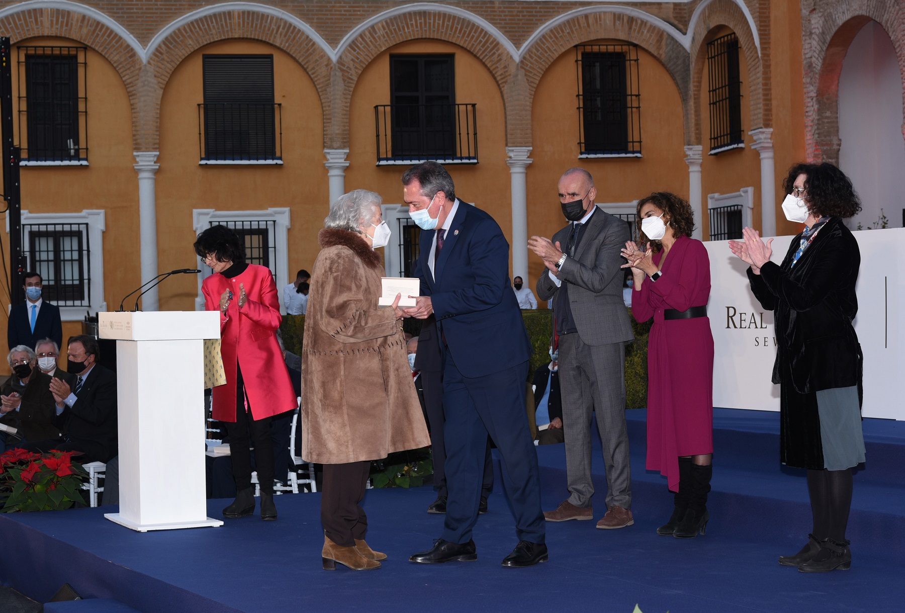 Este acto ha estado presidido por el alcalde de Sevilla, Juan Espadas, junto con la ministra de Hacienda y portavoz del Gobierno de España, María Jesús Montero, y en él han estado también presentes el delegado de Hábitat Urbano, Cultura y Turismo, Antonio Muñoz; la delegada de Hacienda y Administración Pública, Sonia Gaya; el delegado de Economía, Comercio, Relaciones con la Comunidad Universitaria y Área Metropolitana, Francisco Páez; otros de miembros de la Corporación Municipal; el alcaide del Real Alcázar, Román Fernández-Baca; el delegado del Gobierno en Andalucía, Pedro Fernández Peñalver; la consejera de Cultura y Patrimonio Histórico de la Junta de Andalucía, Patricia del Pozo; el presidente de la Diputación Provincial de Sevilla, Fernando Rodríguez Villalobos; distintos miembros del Patronato del Real Alcázar, y representantes de los ámbitos cultural, académico, militar, sindical y social de la ciudad, así como familiares de los reconocidos y de la propia plantilla del monumento.