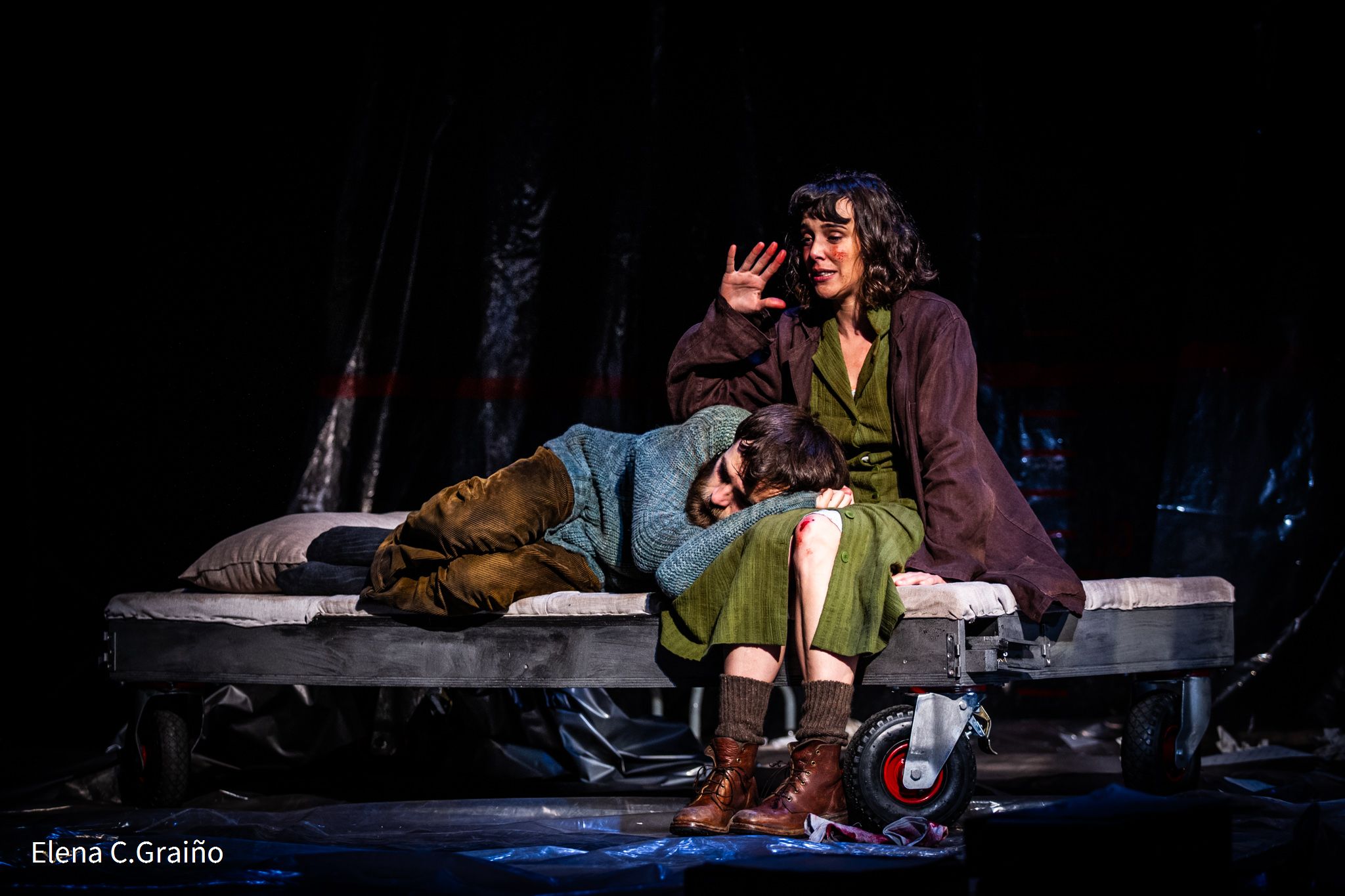 David Serrano, una de las figuras más versátiles de la escena teatral y cinematográfica nacional, y con más de una decena de obras de teatro en su haber como autor y director de teatro (Lluvia constante, Los universos paralelos, Billy Elliot, Los hijos, etc.), recrea aquí la atmósfera asfixiante y estremecedora que recoge el texto de McDonagh y que se materializa en una escenografía que simula un calabozo destartalado en el que la protagonista es interrogada.