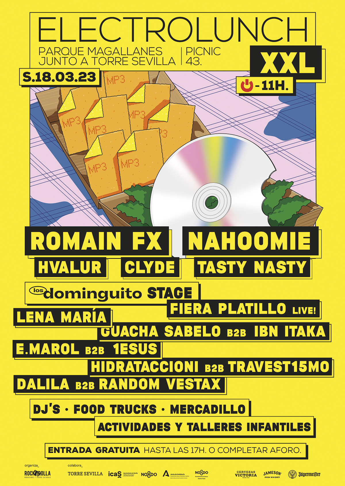 Tras el éxito de público y de organización de sus primeras ediciones en el Parque Magallanes junto a Torre Sevilla, donde se congregaron miles de personas, Rocknrolla Producciones, promotora de ElectroLunch XXL, en colaboración con Torre Sevilla, el Instituto de la Cultura y las Artes de Sevilla (ICAS) del Ayuntamiento de Sevilla y la Agencia Andaluza de Instituciones Culturales de la Junta de Andalucía, continúa ofreciendo una jornada más de ocio y cultura donde se unen música electrónica, talleres, actividades y gastronomía al aire libre en un inmejorable entorno.