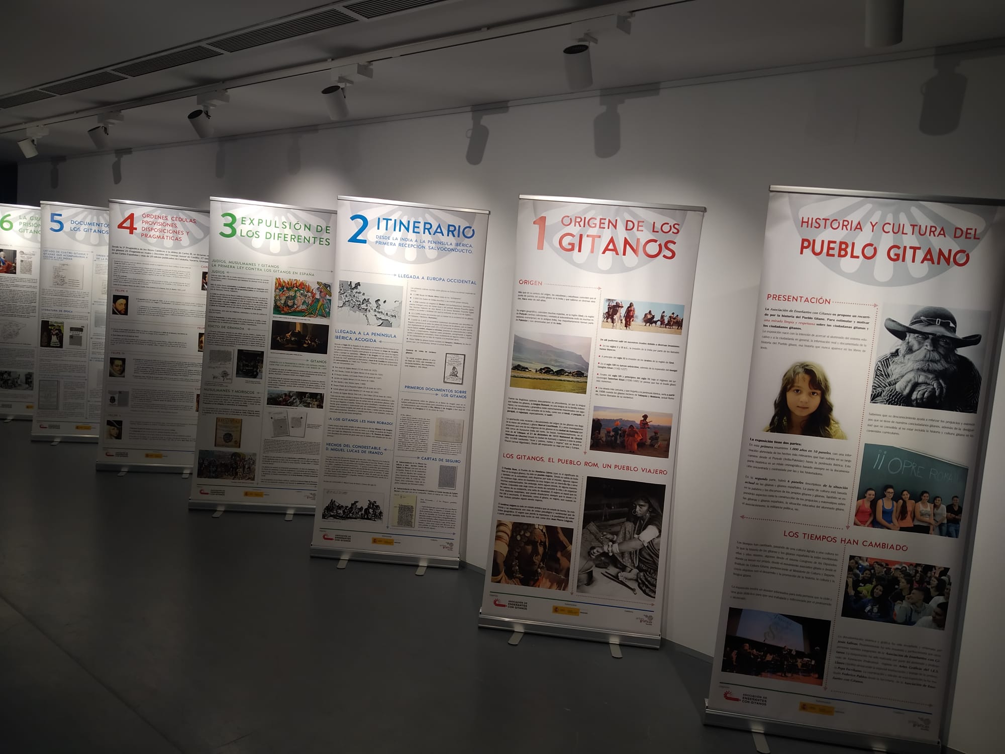 La exposición consta de dos partes diferenciadas. En la primera de ellas se resumen 1.000 años de historia en 10 paneles descriptivos, con información abreviada de los hechos más relevantes que la comunidad gitana ha sufrido en su largo camino desde el Punyab (India-Pakistán) hasta la península ibérica. Se trata de un relato cronográfico basado en la documentación encontrada y contrastada por historiadores e historiadoras.