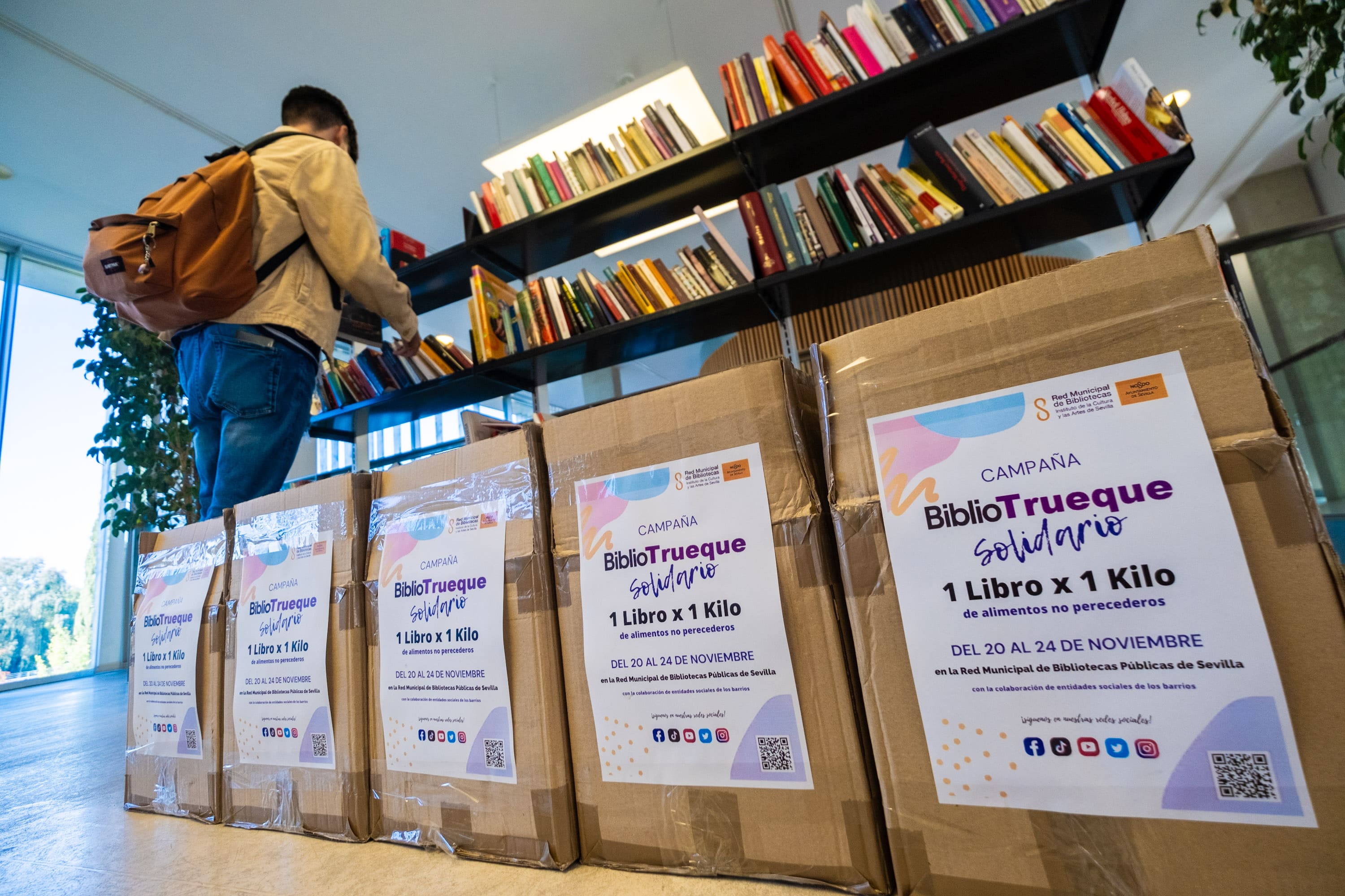 La campaña Bibliotrueque solidario. 1 libro por 1 kilo, impulsada por la Red de Bibliotecas Municipales de Sevilla, perteneciente al Instituto de la Cultura y las Artes de Sevilla (ICAS), ha recogido en su segunda edición más de una tonelada de alimentos en una semana.