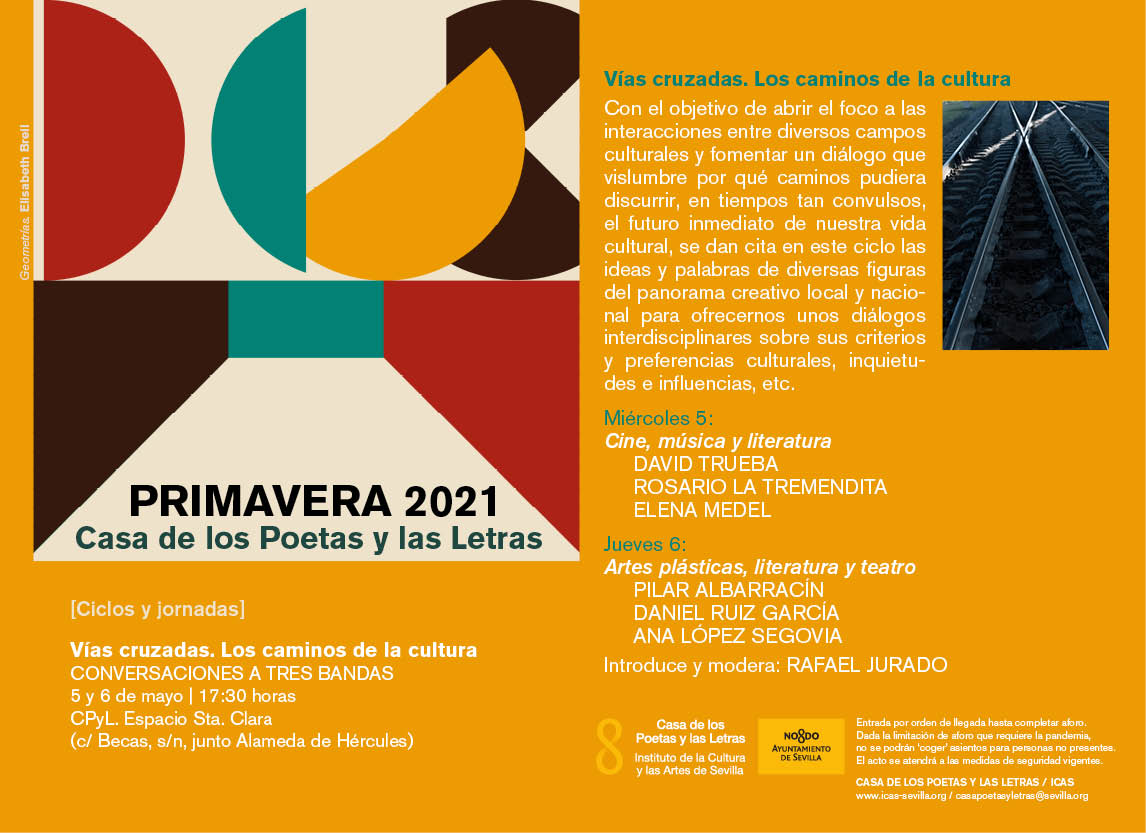 La Casa de los Poetas y las Letras, dependiente del Instituto de la Cultura y las Artes de Sevilla (ICAS), continúa su programación de primavera con unas jornadas dedicadas a analizar el futuro inmediato de la vida cultural. ‘Vías cruzadas. Los caminos de la cultura’ llevan por títulos estas conversaciones a tres bandas que se celebrarán los próximos días 5 y 6 en su sede, el Espacio Santa Clara, y que estarán moderadas por el historiador y gestor cultural Rafael Jurado.