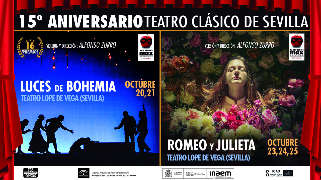 La compañía Teatro Clásico de Sevilla llega esta semana al Teatro Lope de Vega, del Instituto de la Cultura y las Artes del Ayuntamiento de Sevilla, para conmemorar su 15 aniversario. Con funciones previstas del 20 al 25 de octubre, esta compañía subirá al escenario dos producciones de magnitud como son ‘Luces de Bohemia’ y ‘Romeo y Julieta’, con las que quiere celebrar este aniversario con el público y sobre un escenario.