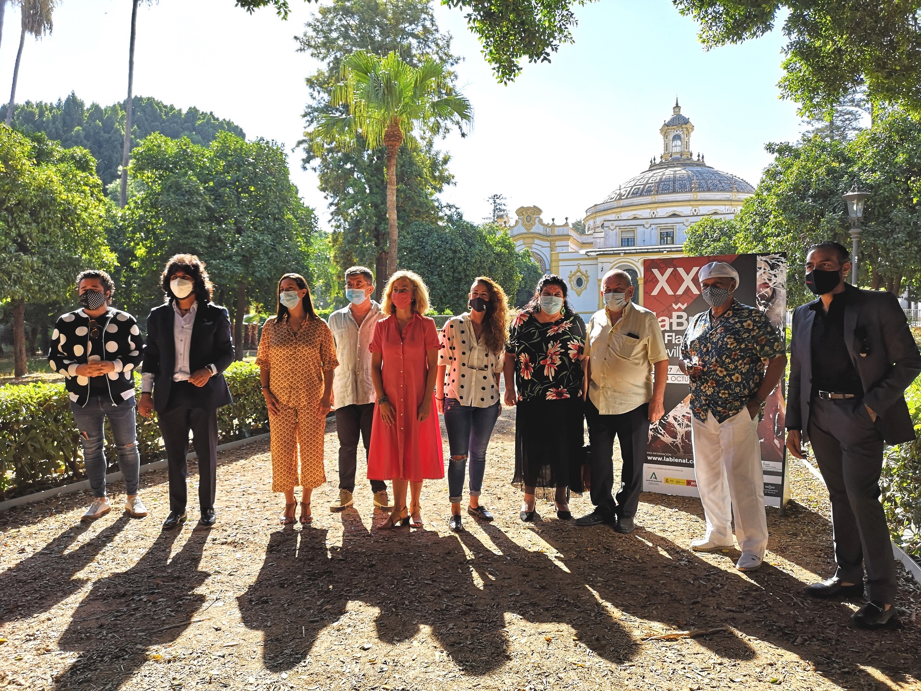 Lo jardines del Casino de la Exposición han acogido hoy un encuentro con las voces que este año forman parte del programa de la Bienal de Flamenco. Para explicar el proyecto que presentan se han reunido en este entorno El Pele, Tomás de Perrate, Pedro El Granaíno, Rancapino Chico, La Tremendita, Inés Bacán y Rafael de Utrera. Han acompañado a los artistas en esta presentación la directora general de Cultura del Ayuntamiento de Sevilla, Isabel Ojeda; la directora general del Área de Cultura y Ciudadanía de la Diputación de Sevilla, Carolina Morales; y el director de la Bienal de Flamenco, Antonio Zoido que ha conducido el acto.