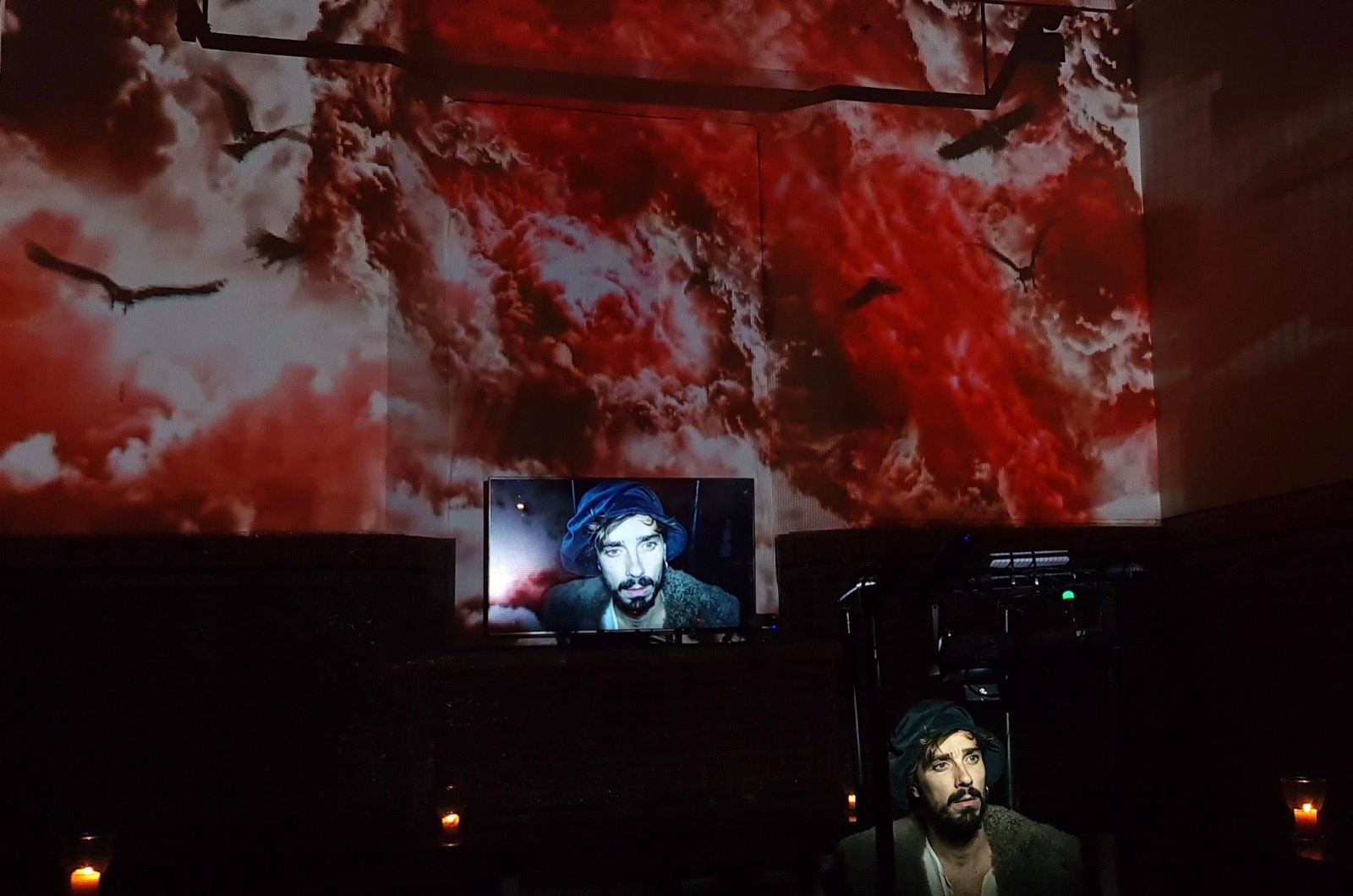 La puesta en escena se desarrolla en un espacio atemporal, que en este caso utiliza el refectorio de Santa Clara, enclave ideal que conserva esa temporalidad neutra, así como el aire sobrenatural y espiritual que contribuirá a crear la atmósfera que envuelve esta propuesta. Para ello, en las paredes del refectorio, a través de abstracciones proyectadas se ilustrará el relato de la gran epopeya. También, de forma constante y durante todo el espectáculo, los sonidos del mar mezclados con ecos lejanos de la travesía estarán presentes; sonidos y silencios del océano perdido y remoto a la búsqueda de la tensión dramática necesaria para contar esta historia. Con este planteamiento audiovisual, se quiere aportar un toque de contemporaneidad para llevar al público por mares y cielos, presagiando las tormentas y los claroscuros de esta impresionante aventura.