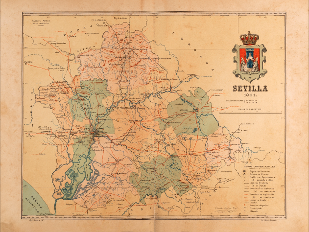 Se trata de un conjunto con características similares: formatos, escudos de las capitales de provincia en lugar destacado, escalas y un minucioso estudio tipográfico a nivel provincial del relieve geográfico y de las comunicaciones. Todos ellos fechados entre 1901 y 1902 y editados en Barcelona. Una buena muestra sin duda de la cualificación alcanzada en la época en este tipo de publicaciones, que se unirá a la colección de documentos gráficos conservada en el Archivo Municipal de Sevilla, digitalizados en el Departamento de Reprografía del Servicio de Archivo, Hemeroteca y Publicaciones del ICAS del Ayuntamiento de Sevilla.