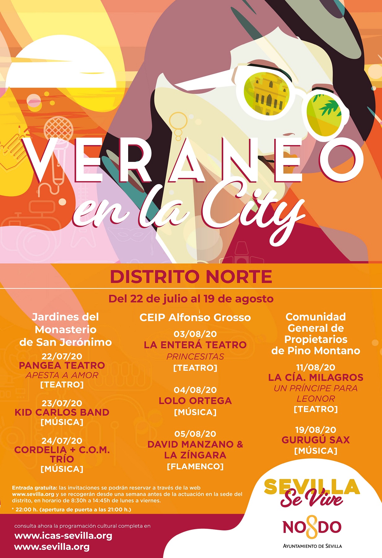 Tras una primera tanda de espectáculos en el mes de julio en el Monasterio de San Jerónimo, el Distrito Norte vuelve a abrirse a la agenda cultural de ‘Veraneo en la City’ con nuevas citas en torno al teatro, el flamenco y las músicas actuales como el jazz y el blues que, en esta ocasión, tendrán como escenarios el CEIP Alfonso Grosso y la Comunidad de Propietarios Pino Montano.