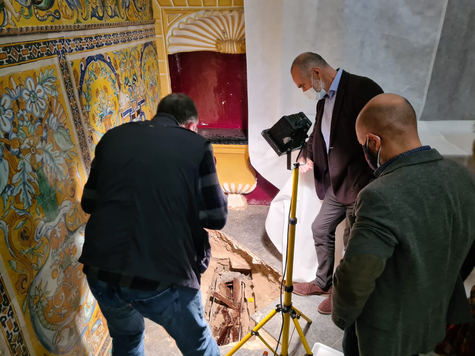 De este hallazgo se ha informado a la Consejería de Cultura de la Junta de Andalucía, que dio su visto bueno a mediados de marzo pasado a los trabajos de catas arqueológicas preventivas, tendentes a la posibilidad de ubicar una cámara bufa o de aireación que garantice la conservación de los azulejos cerámicos, en el marco de las labores previas para planificar la restauración de los mismos. Debido a los trabajos, la Capilla se encuentra cerrada a las visitas y se han adoptado las medidas necesarias para proteger las pinturas ubicadas en este espacio del Real Alcázar.